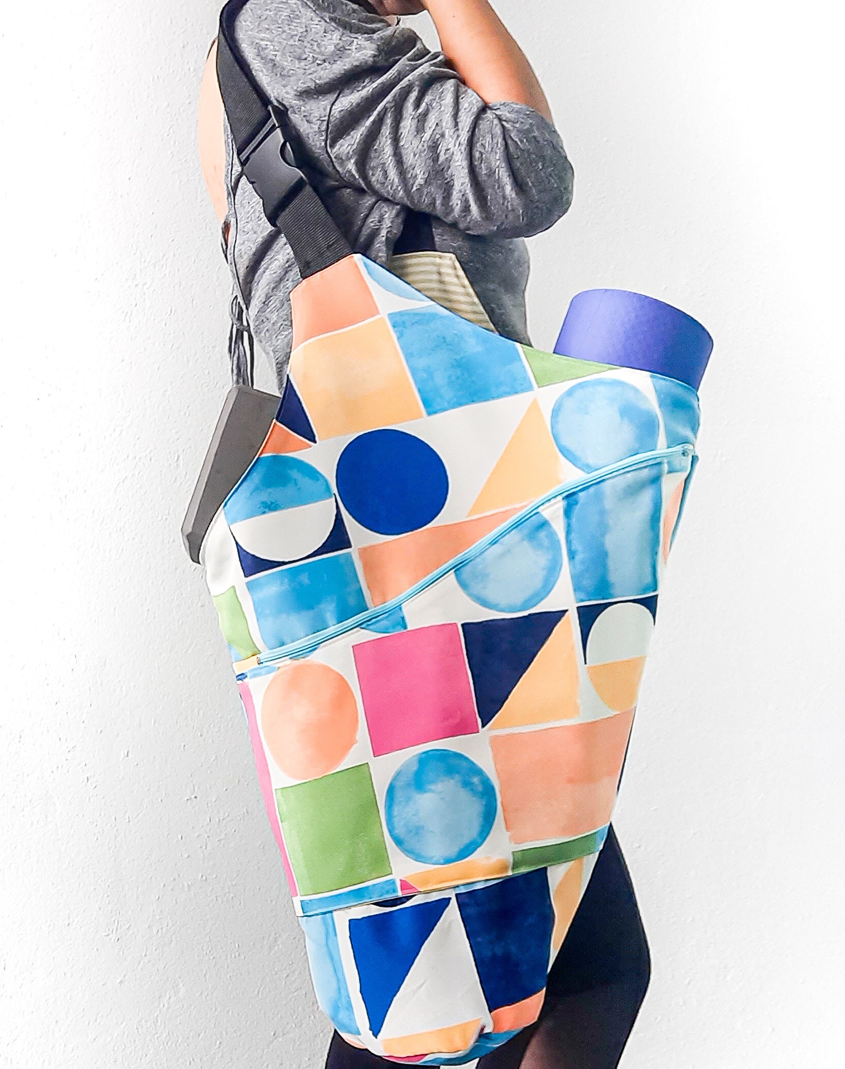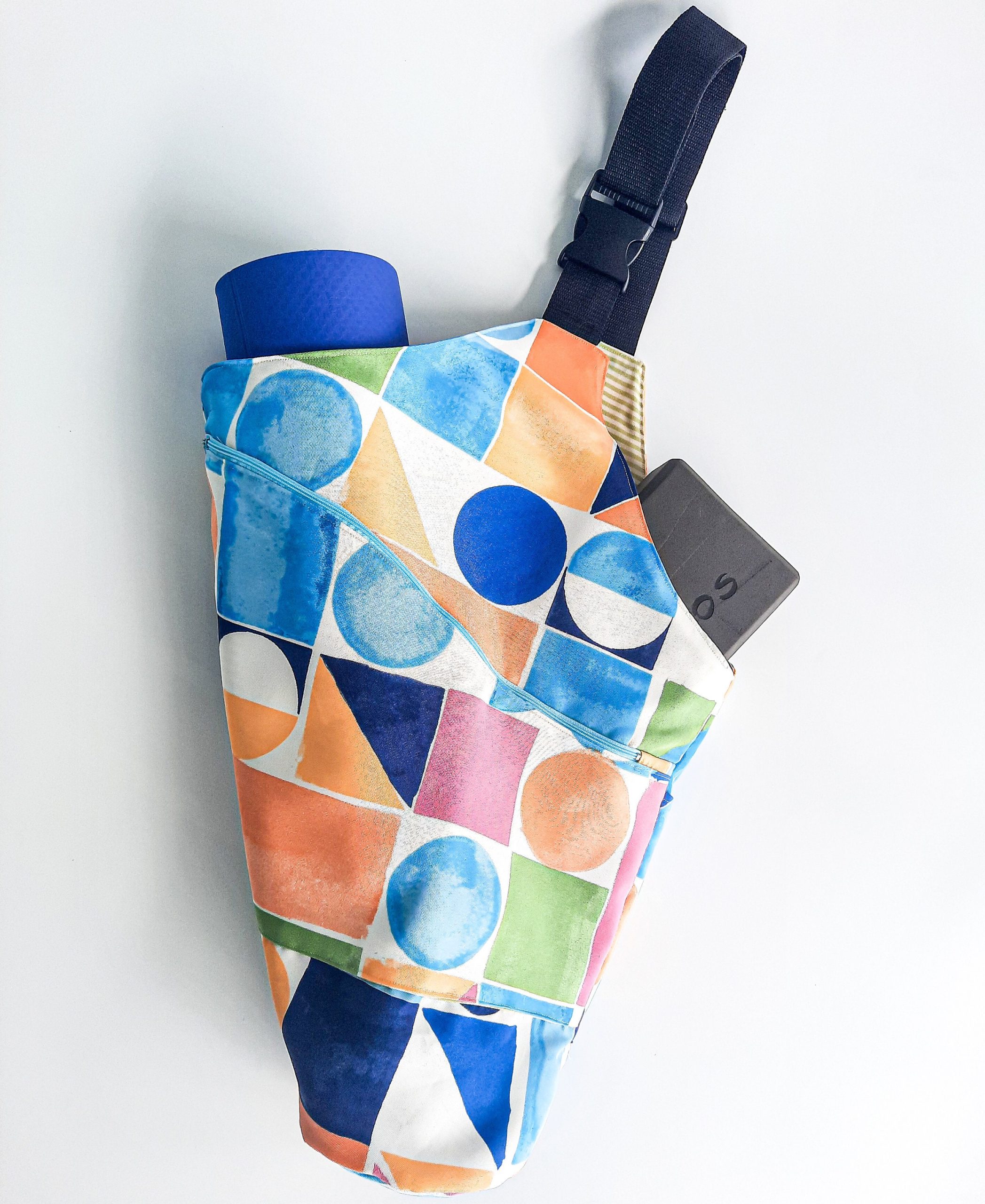 The Yoga Mat Bag item comes with 2 PDf patterns and 2 PDF instructions. The bag has 2 large pockets on the outside one of them is a zippered pocket. You will need one zipper, 1.5 yards of canvas or cotton fabric, a one-yard lining, and a piece of the interface. 1 strap ring,1 strap adjustment, and 1m strap.