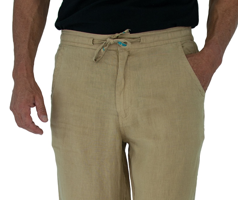 * Men’s drawstring linen pants, With a comfort fit, Garment dye wash for extra softness and comfort