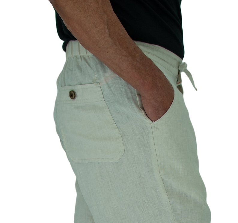 Our linen pants feature front pull string that can be used as a belt, To ensure the perfect fit, Compliment with embroidery of the Short Fit brand, Wooden buttons on these pants make a great add-on to the linen fabric look. These pants made with our comfort fit, for maximum all-day comfort. The ultimate vacation pants! We use the highest quality fabrics available, So you can enjoy our products for many years, We guarantee your satisfaction 100%